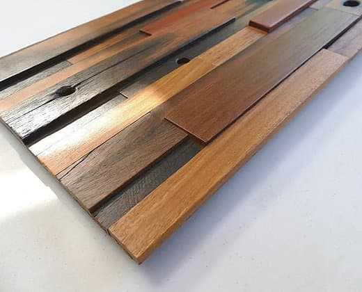 Wood mosaic tiles are made from various sizes and shapes of solid wooden pieces. Reclaimed wood are often taken from old fishing boats and old ships. They go through the necessary wood treatment process, cut and then glued to fabric mesh or to a thin layer of plywood, in particular pattern to make beautiful mosaic tiles. Wood mosaic have the charm and character of reclaimed wood. Eye catching works of art, which give beauty to your place.