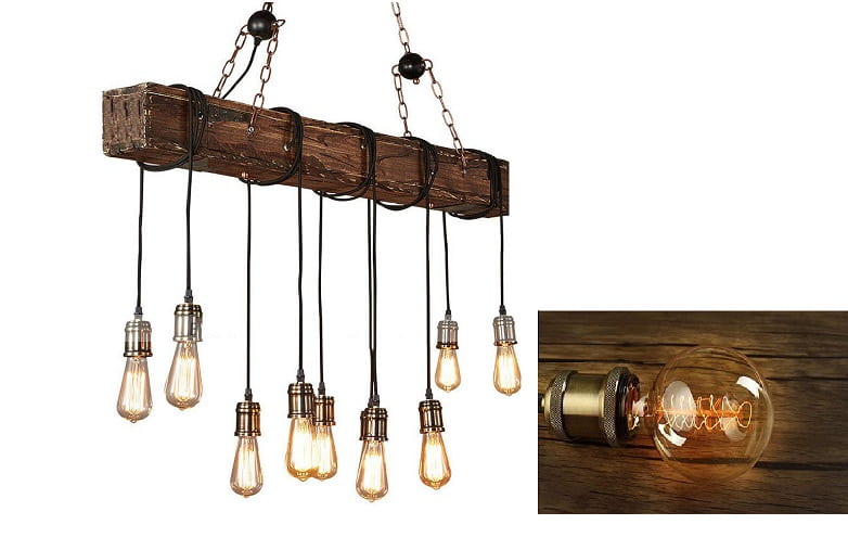 Suspended Wood Beam Lighting, Ceiling Wood Beam Light Fixture. Hanging lights.