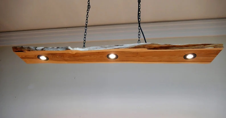 Suspended Reclaimed Wood Timber with 3x Spotights.Reclaimed wood beam spot lights, Rustic wood beam recessed spotlights, wood beam spotlights, Rustic Beam Light, Rustic Wood Panel LED Spot Lights