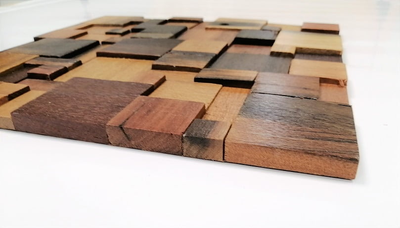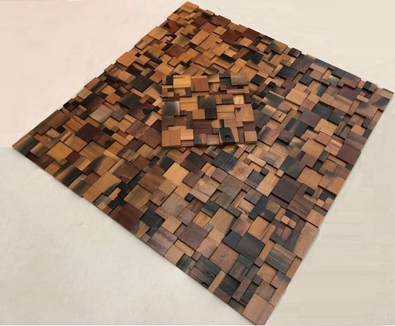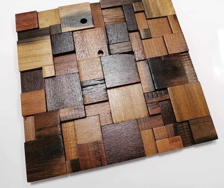 Wood mosaic tiles are made from various sizes and shapes of solid wooden pieces. Reclaimed wood are often taken from old fishing boats and old ships. They go through the necessary wood treatment process, cut and then glued to fabric mesh or to a thin layer of plywood, in particular pattern to make beautiful mosaic tiles. Wood mosaic have the charm and character of reclaimed wood. Eye catching works of art, which give beauty to your place. Vintage home decor.