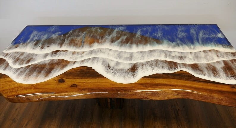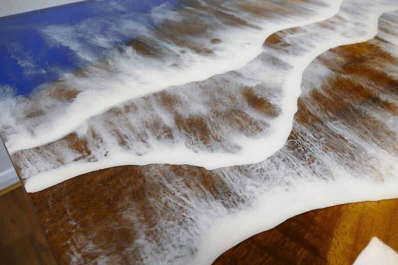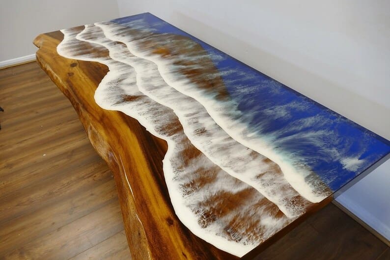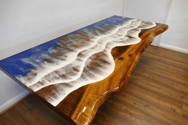 Luxurious dining tables, made of quality resin and rosewood slabs.