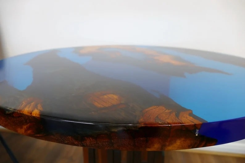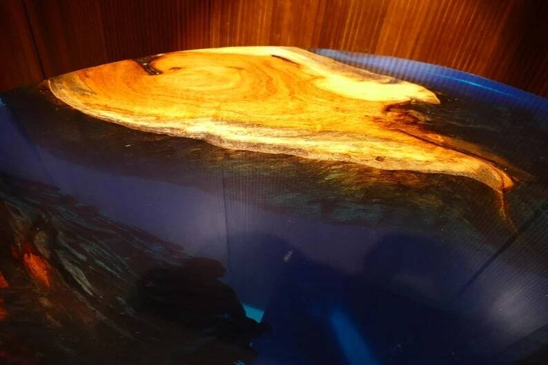 Luxurious Coffee table, made of quality resin and rosewood slabs.