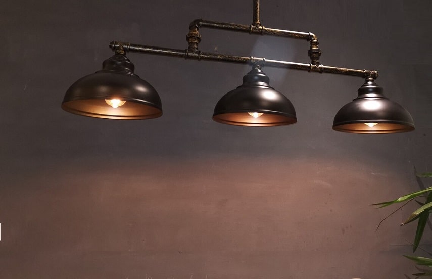 Industrial Style Metal Pipes Light With 3 Metal Shades