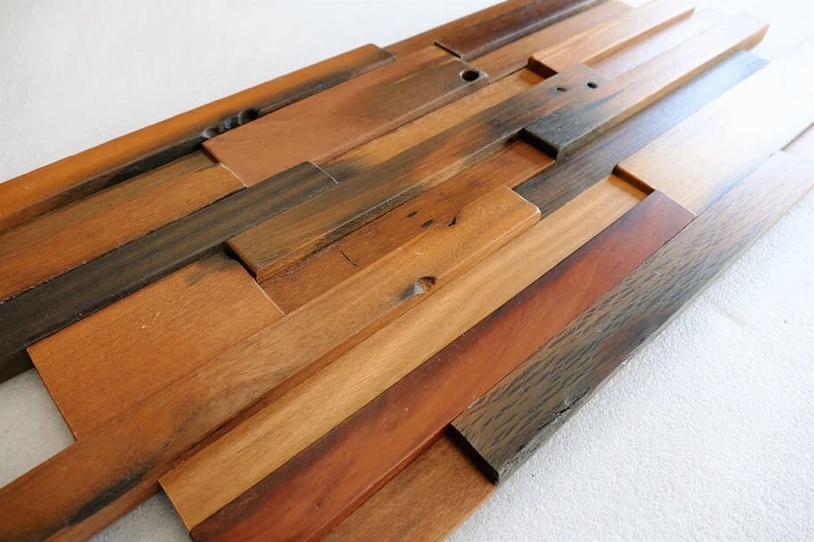 Wood Mosaic, unique wall tiles made of reclaimed wood and have a very special characteristic and style. Reclaimed wall decor, Reclaimed Interlocking Panels, Wall Cladding.