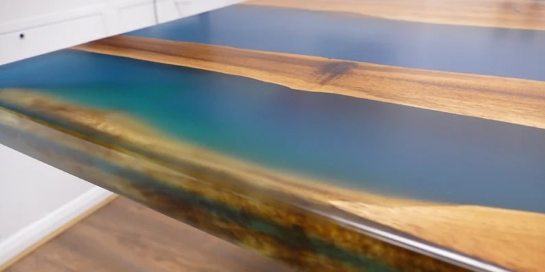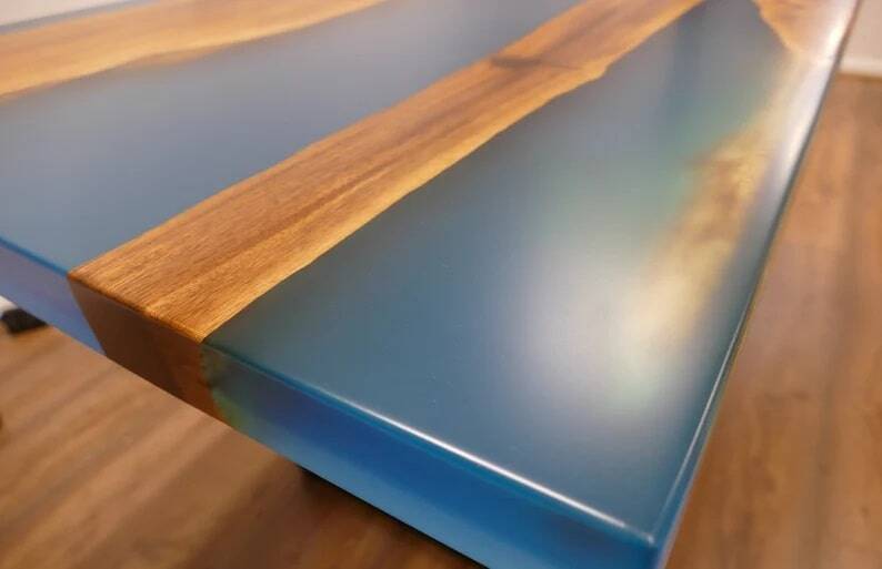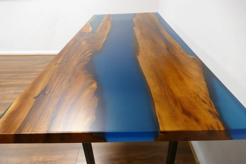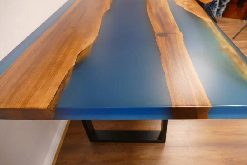 Resin dining table, made of quality resin and Walnut Wood slabs.