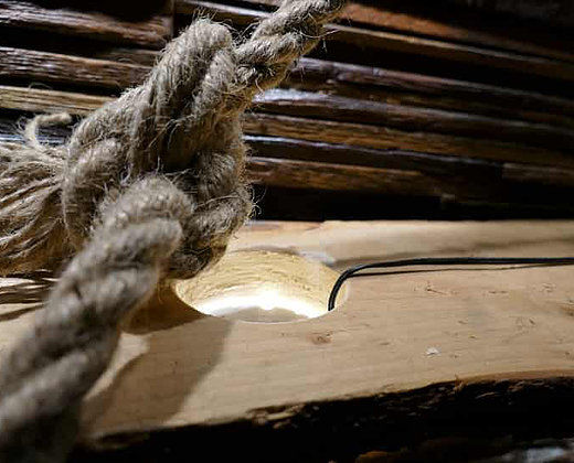 This wood beam comes with 2x recessed LED spot lights (3w each). They come with adaptor, lead and UK plug, hence it can be connected to a wall switch (plug & play).